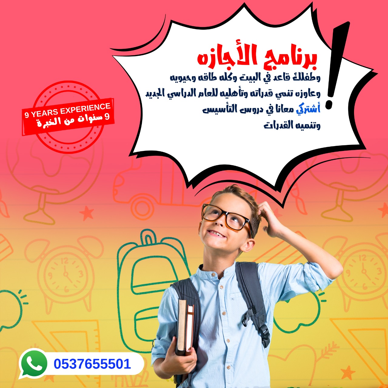 مدرسين خصوصي تأسيس ومتابعة بأحدث الطرق التعليمية ... استثمر إجازة طفلك معنا ليصبح في مستوي تعليمي أفضل ومتفوق على زملاءه