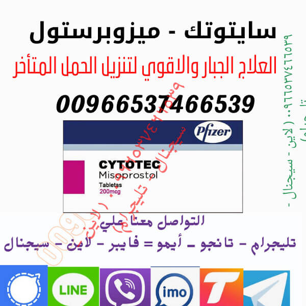 حبوب الاجهاض سايتوتك، سايتوتك، ميزوتاك (ميزوبرستول) 200 الإجهاض الدوائي المنزلي الآمن لطلب الادويه التواصل علي رقم 00966537466539 (فايبر - ايمو - لاين - سيجنال - تليجرام ) إيمانا منا بأن النتائج تأتي بعد المعرفة العامة والشاملة، وضعنا أمام عملائنا مجموعة المعلومات حول منتجنا لكي يشكلوا صورة كاملة حول منتجهم وكيفية استعماله وآثاره. كل معلوماتنا مصدرها الرئيسي من خبرائنا والأطباء الذين نتعامل معهم. فلنتعرف أولا عن حبوب الاجهاض سايتوتك (سايتوتك). حبوب سايتوتك (سايتوتيك) للاجهاض : هي حبوب الاجهاض تتكون من مكون واحد وهو ميزوبرستول، تعمل تلك الحبوب على تنزيل الحمل بشكل آ عبر توليد انقباضات في الرحم تشابه تلك التي في عملية الولادة. في هذا المقال سوف نناقش كيفية استخدام حبوب الاجهاض سايتوتك CYTOTEC. بقوة 200 ملغم وطريقة تجنب الأعراض الجانبية وكيفية شرائه . كيف تعرف تتعرف على النوع الفعال في هذا الدواء: يكون الدواء من مركب ميزوبرستول فقط بحجم 200 ملجرام للحبة . تكون بشكل سداسي ويحفر عليها الرقم الخاص بالمصنع وهو 1461. تأتي بالعلبة الخاصة بالمصنع ولونها ابيض نوعين أسود وردي اللون . صنع في بريطانيا انجلترا United Kingdom . يكون صنع بتاريخ لا يقل عن سنة واحدة. طريقة استخدام دواء سايتوتك الاصلي للاجهاض: قبل استخدامك لدواء الإجهاض، تأكدي من أنه الدواء أصلي وصلاحيته جديدة لأن الادوية المقلدة قد تسبب أعراض جانبية غير مرغوبة، وقد لا يحدث إجهاض وقد يؤثر الدواء على صحتك بشكل جذري، تأكدي من أنك تريدين إنهاء الحمل لأنه بعد استخدامك للحبوب لن يكون هناك مجال للتراجع. إرشادات لاستخدام MISOPROSTOL للتأثير على الإجهاض: يباع ميزوبروستول عادة في أقراص من 200 ميكروغرام. يُنصح بأربعة أقراص لبدء عملية إجهاض مبكر، وقد يُطلب أربعة (أو نادراً ثمانية) من أجل إكمالها. من الأفضل استخدام الميزوبروستول في غضون تسعة أسابيع منذ آخر حيض، أي أقل من 63 يومًا إعتبارًا من اليوم الأول من آخر فترة عادية. يتم إعطاء الميسوبروستول في مرحلة الحمل المبكرة أفضل، لأنه أكثر أمانًا وفعالية وأقل ألمًا. يمكن استخدام الميزوبروستول في وقت لاحق أثناء الحمل ولكن مخاطر المضاعفات تكون أعلى (انظر أدناه). يجب إزالة النساء اللواتي لهن وسيلة لمنع الحمل داخل الرحم (IUD) في مكانها قبل استخدام الميزوبروستول. الأعراض الجانبية لحبوب الاجهاض سايتوتك : يمكن أن تسبب حبوب الإجهاض أعراض جانبية كثيرة، منها غثيان صداع وأعراض الجانبية قبل الدورة الشهرية وبرودة وألم بالظهر، و الرحم، ونزيف. وفي حال حدوث نزيف، الرجاء الذهاب إلى أقرب مستشفى لعمل تنظيف للرحم، ويرجى أن يكون هناك شخص مسؤول بجانبك في حال احتجت إلى أي مساعدة. وقبل استخدام الدواء يرجى التحدث إلى طبيبك في حال وجود أي حساسية لديك تجاه ميزوبرستول سايتوتك. في الكثير من الأحيان قد تجد إعلانات على الإنترنت، تفيد بتوفر تلك الأدوية من أطباء معتمدين. يرجى الحذر في حال قررت شراء الدواء من مصدر غير مؤكد عبر طلبك رخصة لممارسة مهنة الطب منهم، وطلب صورة للدواء وخصوصا حبة الدواء، وتأكدي من أنها الأصلية قبل قيامك بعملية الشراء تلك. النزيف وتقلصات الرحم (التشنج)، هي التأثيرات المقصودة استخدام الميزوبروستول لإحداث الإجهاض التشنج، سيكون أقوى من فترة الحيض العادية وقد يكون مؤلماً. يمكن أخذ دواء الألم المضاد للالتهاب غير الستيرويد مثل الإيبوبروفين دون التداخل مع الميزوبروستول. سيكون النزيف أثقل وأطول من المعتاد لفترة طبيعية حتى أسبوع في معظم الحالات، مع استمرار البقع باستمرار حتى تستأنف الدورة الشهرية في غضون أربعة إلى ستة أسابيع. هذه الآثار ستكون أكثر وضوحا في حالات الحمل لمدة أطول. تعتبر القشعريرة والحمى من الأعراض الجانبية الشائعة ولكنها مؤقتة. الحمى الشديدة أقل شيوعًا، ولكن يمكن أن تحدث وتختفي عادة في غضون ساعات قليلة، مثل الغثيان والقيء والإسهال. يجب على النساء التماس العناية الطبية إذا عانين من أي من الآثار الجانبية ا